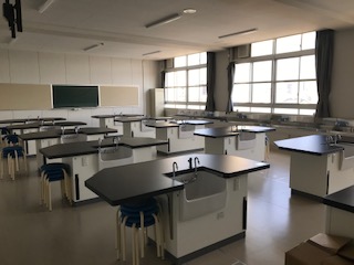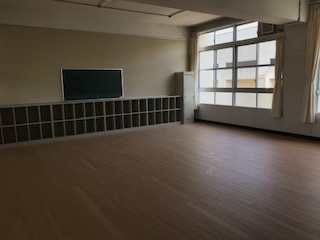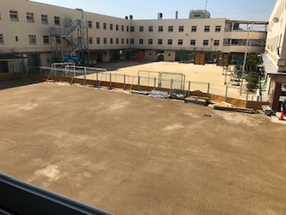 増築された新校舎へ引っ越しの準備のために入らせてもらいました。電気がまだ通っていないので暗いです。整地も進んでいます!