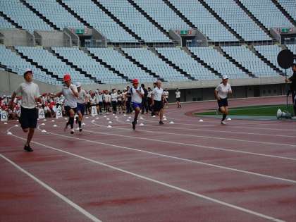 直線の100m走とセパレートコースの400メートルリレーの様子です。