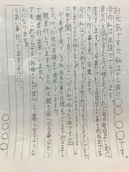 写真のような内容で書きましょう。10年後の自分に応援や励ましになります。