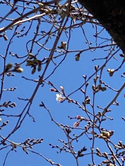 本日(ほんじつ)は、「3輪(りん)」でしたので、春日出小学校(かすがでしょうがっこう)講堂横(こうどうよこ)の桜(さくら)の開花宣言(かいかせんげん)はまた明日(あす)以降(いこう)に持(も)ち越(こ)されました。