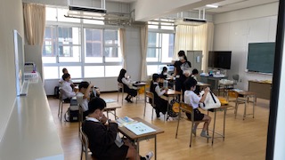 後半の皆さんも前半同様、教室で書類や課題の回収、新たな課題の配付、学級活動を行いました。