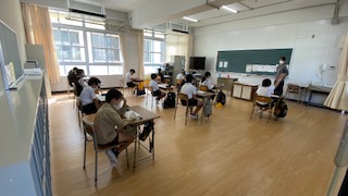 教室で、単元テストを実施。時間をかけ、じっくりと思い出しながら、解答していきました。家に帰って、もう一度復習しましょう!!