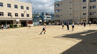 運動場では、体を動かす活動を行いました。走る、跳ぶ。元気な声が校舎にこだましました。