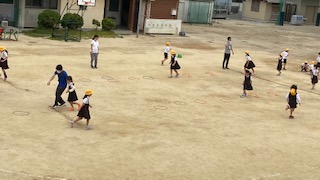 運動場では、大きく体を動かしました。ちょっと汗をかいてしまいました。
