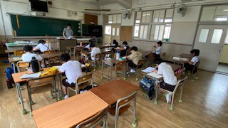 3年生は、まず運動場で『パプリカ』を振り付けで踊り、体をしっかり動かします。その後、教室で課題に取り組みました。早い子は、手をさっと挙げて『できました』ポーズ。どんどん進んでいきます。