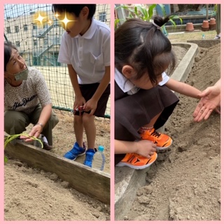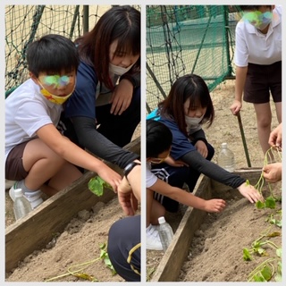 みんな、暑い中、楽しく植える事ができました。たくさんサツマイモが出来るのが楽しみです。