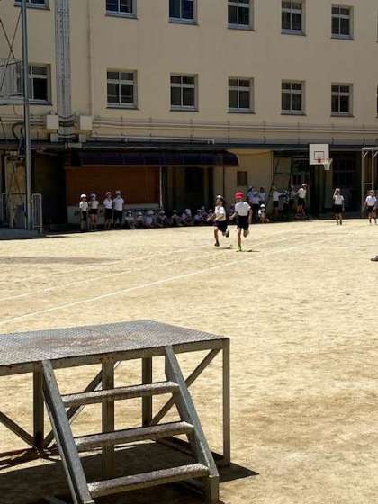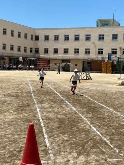 4年生の中にも、将来のオリンピック選手がいるかも。遅くても全力で走る姿が、大変清々しくすばらしいです。