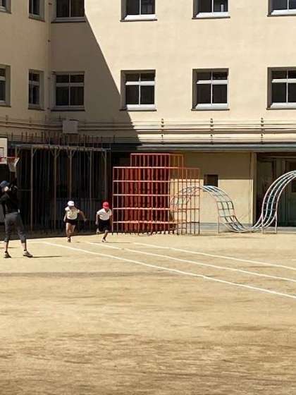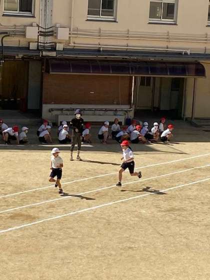 5年生の測定が、1時間目に行われました。よーい、ドンとともにダッシュ!さて、タイムは?
