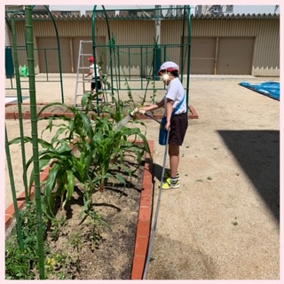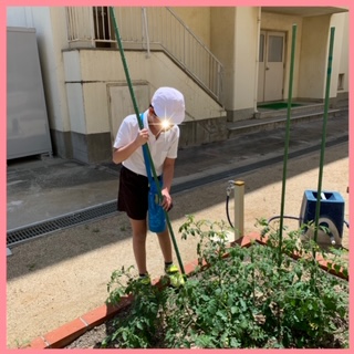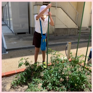 今日は、5年の児童と一緒に畑の観察にいきました!!