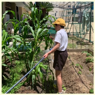 トマトも、実が増えてきました〜、赤くなるのが楽しみだぁ〜と、言いながら水まきを手伝ってくれました☆