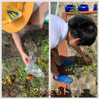 今回、2年生もトマトを作ってるので、どちらか早く育つか楽しみです☆
