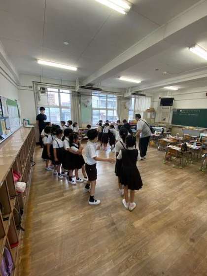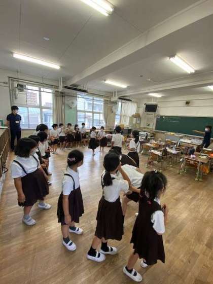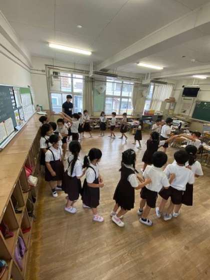 音楽の授業で、「ロンドン橋落ちた」の曲にそって、捕まったら退場になります。最後まで残るのは誰でしょうか?