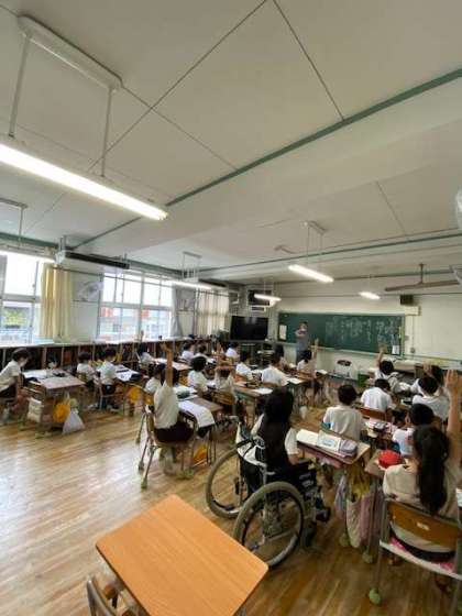 お昼、6時間目の授業です。国語では、「走れ」を舞台に、主人公と母の心の変化を読み取ります。意見や自分の考えを発表し、それに対して聞き正す。様々な考えが出て、「あっ、そう言う考えもあるのか。」発見が多いです。