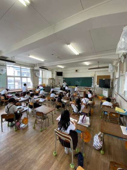 5時間目の体育がすんで、興奮冷めぬまま学級活動に。キャリアパスポート(成長の記録)の作成に取りかかります。1学期が始まってから1ヶ月。2年生として、少しずつ成長しています。