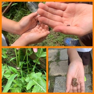 最後に、何がしたいかぁ〜の質問で、「虫取り〜!!」となり、みんなで、なかよし畑の周辺を散策しました。