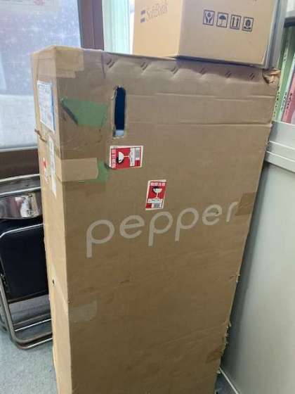 昨日、急なお客様がいらっしゃいました。「ペッパー」さんです。まだ、ベールは脱いでいませんが、あのロボットが春日出小学校にやって来ました!
