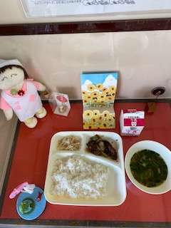 本日の給食は、プルコギ、トック、もやしの甘酢和えです。