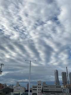 朝、ふと空を見上げると、変わった空模様になっていました。時間を忘れて見ていると、太陽のある東側が明るくひかり、西側が陰っているように見えます。