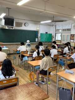 給食の栄養素について話したり、好きな本について質問したり、、、。校長先生には、『今日の給食の献立は、知っていますか?』の質問が。『いいえ』と答えると、ペッパーさんが『今日の給食は、ごはんと・・・』と教えてくれました。