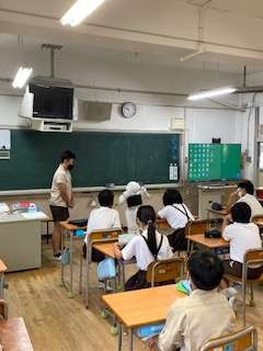 6年生でやっている「プログラミング」の授業風景です。6班編成でそれぞれが組み上げたプログラムを披露しました。