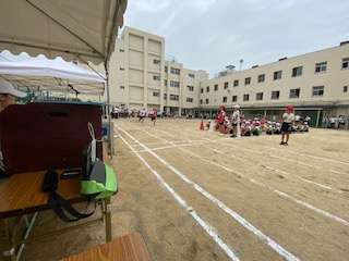5年生は、タイムリレーです。一人ひとりのタイムを足し算して、合計を競います。