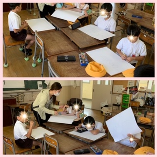 運動会の絵は、自分が頑張った部分を思い出しながら描き始めました☆