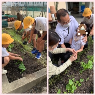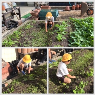 その後、畑に行き草引きをしました。たくさん抜き畑がスッキリしました。大根が大きく育つように願います(^^♪