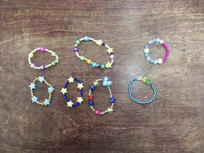 みんなで工夫して、色の違うビーズを交互に入れてみたり、小さなビーズを6個ずつ入れ、その次に☆のビーズを入れてみたりしました。