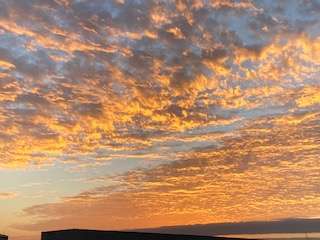 今朝の朝焼けの景色です。なんとも言い表せない模様と色彩です。自然の雄大さを感じます。