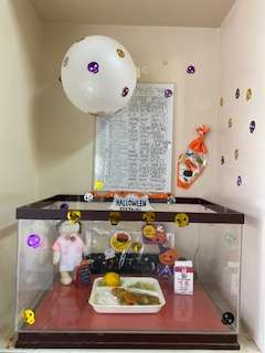 給食当番の皆さんが、給食を取りに来た時に、より美味しく、楽しく食べられるように、飾り付けをしています。
