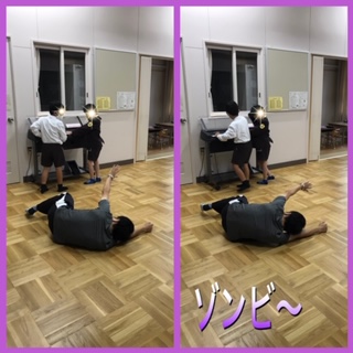子ども達は、何とかしようと考え、ゾンビが嫌がる音があると思い、ピアノの音で攻撃しました☆彡