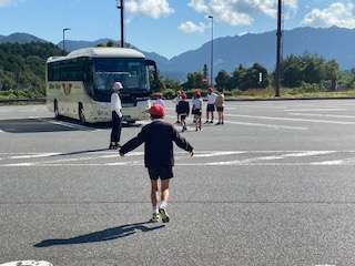 自然豊かで、大きく深呼吸する子も。バスも春日出小の1台だけで、トイレもゆったりしています。