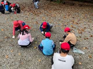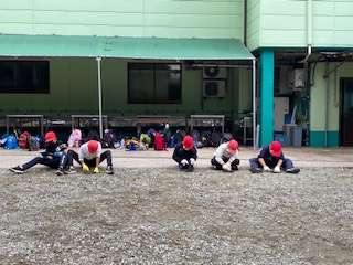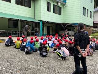 昼からのプログラム。焼き板のスス落とし。軍手を着けて、歯ブラシでゴシゴシ。新聞紙でピカピカ。色つけは、3日目に行います。それまでに思い出を作り、どんな絵にするか考えます。