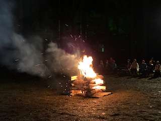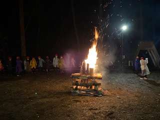 メインイベントの1つ、キャンプファイヤー。夕方、少し雨が降りましたが、始まる前には奇跡的に雨もやみました。