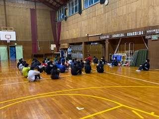おはようございます。清々しい朝と言いたいところですが、あいにくの雨。2日目の活動が始まりました。まずは、朝の集い。ラジオ体操と先生からの諸注意。皆さん、ちょっと寝不足でしょうか?目をこすりながらの洗顔でした。病気、怪我なく朝を迎えました。