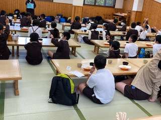 食べる前に、係からクイズを一問!正解者には、何が当たるのかなぁ?写真屋さんに「ハイ、チーズ!」
