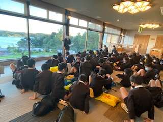 賢島の宿「みち潮」に到着しました。バス内でお菓子を食べ、元気復活!でも、夕ご飯たべれるのかなぁー。