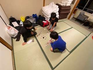 部屋では交友会!カードで遊んでいます。もうすぐ、就寝時間。楽しい時間って本当に過ぎるのが早いですねー。