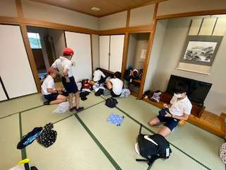 荷物整理します。忘れ物ないように気をつけて!大事な「お土産」も各自まとめています。