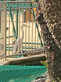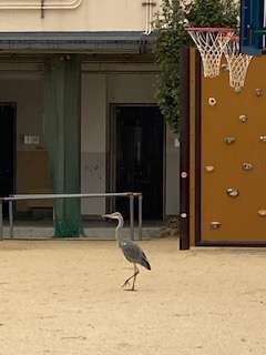 この2週間ほど、毎朝、春日出小学校には青サギが来校します。