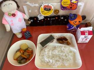 本日の給食は、味噌カツ、じゃがいもと野菜の煮物、焼きのりです。