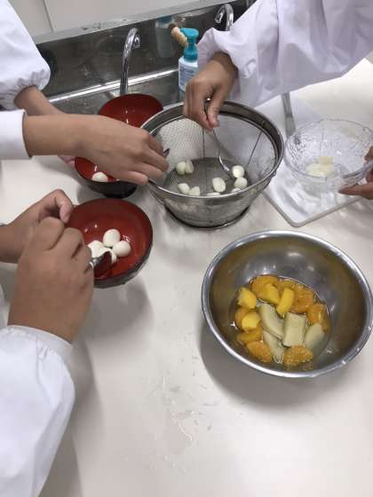 10月22日(木)の家庭科クラブは白玉フルーツポンチの調理実習でした。
