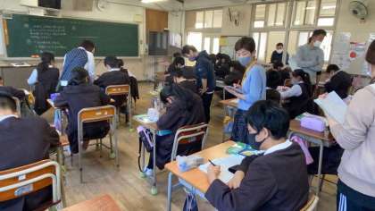 教育委員会より、指導いただく先生をお招きし、授業を観察。子どもたちは、少々緊張気味でした^_^