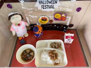 今日の給食は、豚肉のネギ醤油焼き、吹き寄せ煮、ツナ大豆そぼろです。