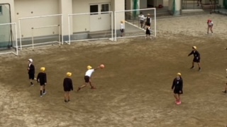 休み時間の様子です。ドッヂボールの投げる瞬間を捉えました。ナイススロー!