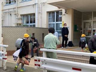 本日は、?橋区長、齋藤副区長他区役所の方々が、児童の元気な登校の様子を見に来られました。児童1人1人に、手を振りながらお声かけいただきました。
