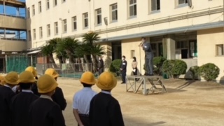 続いて全校朝会で、「春日出」の名の由来をお話いただきました。また、ぜひ発して欲しい良い言葉「ありがとう」を児童に皆さんに紹介していただきました。