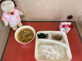本日の給食は、なまり節の生姜煮、味噌汁、ほうれん草のおひたしです。