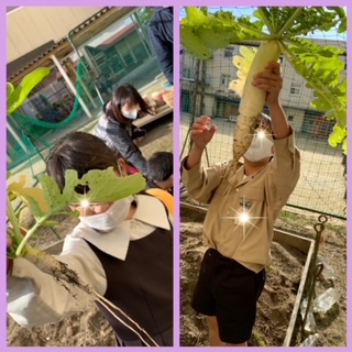 その後、そろそろ収穫が近いなという事で、大根を収穫しました。