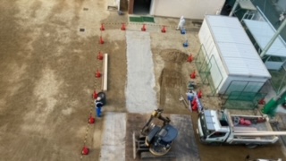 まずは、北校舎と東新校舎とを結ぶ「渡り廊下」の建設から始まりました。